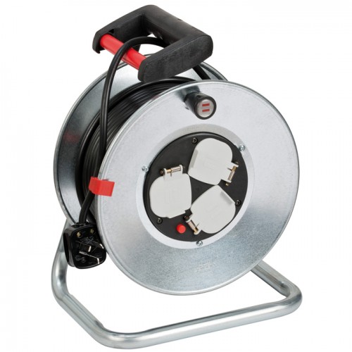 Robust, heavy duty 13A cable reel with 3 x sockets BS type