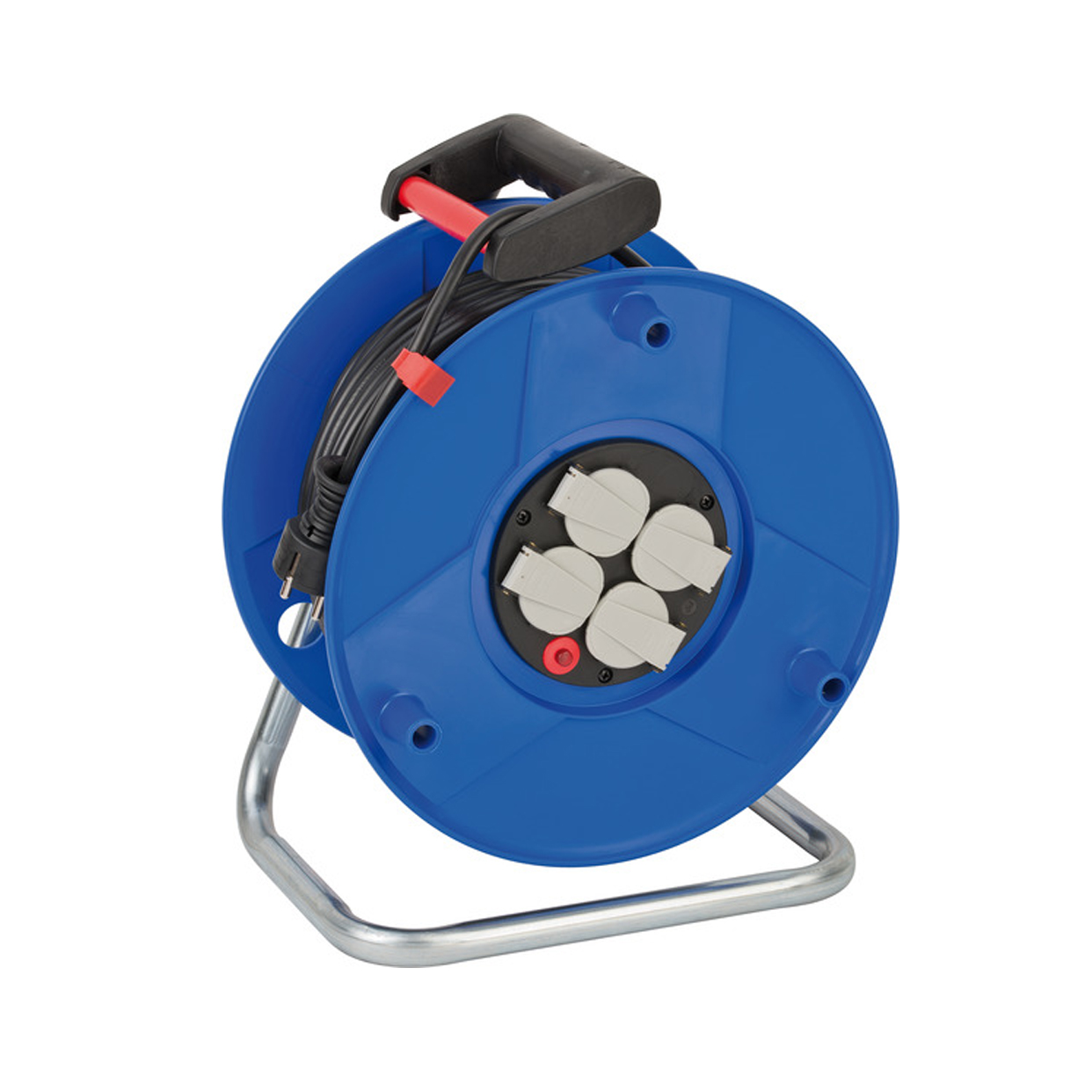 ● Extension reel with ergonomic and rotary cable guide handle for easy winding and rewinding – perfect for indoor use.